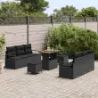 vidaXL Vrtna sedežna garnitura s shranjevanjem 9 pcs Črna Poly ratan