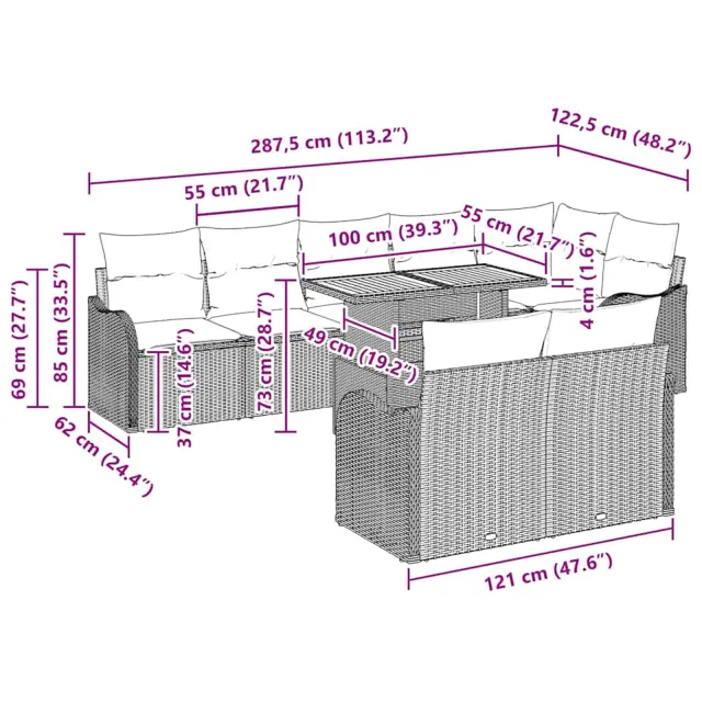 Set vrtnega kavča je ravno to, kar potrebuješ za svoj zunanji prostor. Združuje moden videz s praktično zasnovo. S svojo privlačno pravokotno obliko in pleteno teksturo popestri vsak vrt ali teraso, ponuja ti prostor za sprostitev ali zabavo. Modularen je, lahko si ga urediš po svoje, ne glede na to, ali gostiš prijatelje ali želiš mir v naravi.
