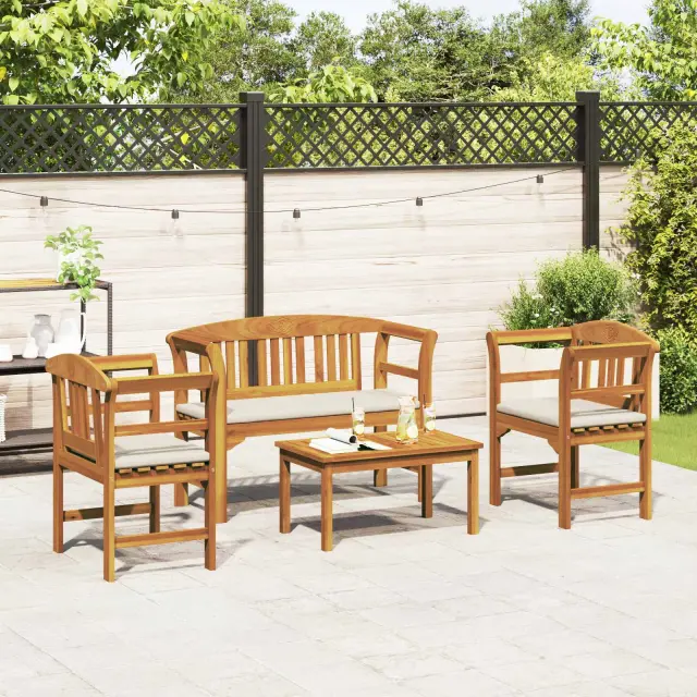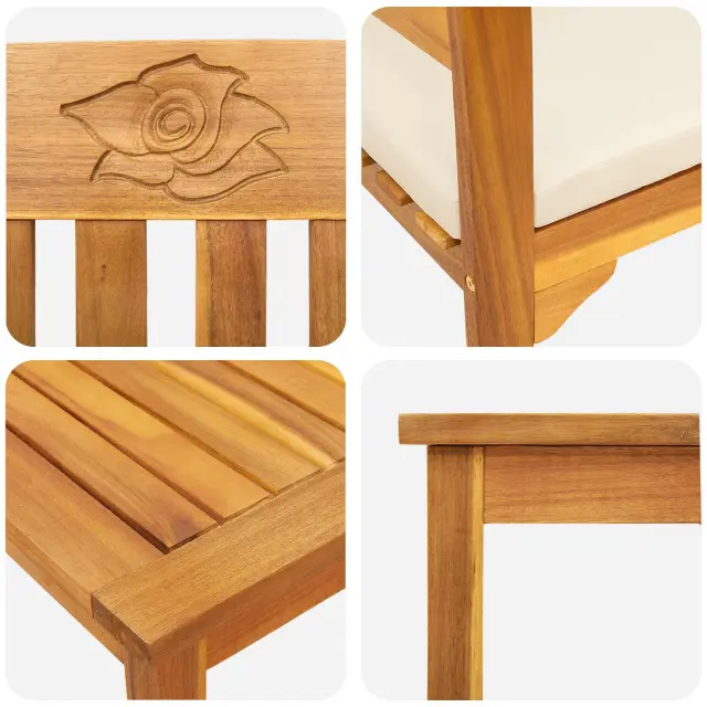 Pohodniški komplet Garden Rose ponuja izbiro usklajenih sedežnih in miznih postavitev, zasnovanih za uporabo v vrtu in na terasah. Kombinira trdno akacijevo konstrukcijo z rožnatim izrezom, kar zagotavlja uravnoteženo zasnovo, primerno za različna zunanja okolja. Oljen zaključek ohranja naraven videz lesa in podpira praktično uporabo na prostem. Na voljo je več možnosti postavitve, kar omogoča prilagodljivost potrebam po prostoru in sedežu.
