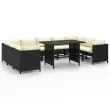 vidaXL Vrtna sedežna garnitura z blazinami 10-delna poli ratan črna