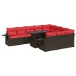 vidaXL Vrtna sedežna garnitura z blazinami 11-delna rjav ratan/akacija