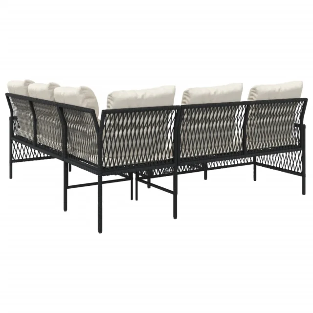 vidaXL Vrtna sedežna garnitura z blazinami 2-delna črna poli ratan