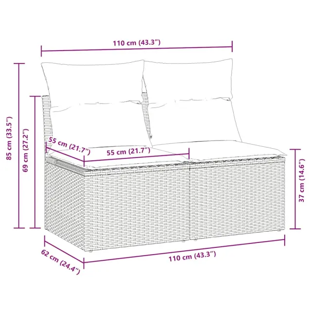 Ta vrtna sedežna garnitura je popoln dodatek za vaše dvorišče, teraso ali verando, saj zagotavlja udoben in vabljiv prostor za klepet z družino in prijatelji ali preprosto za sprostitev in uživanje na prostem.