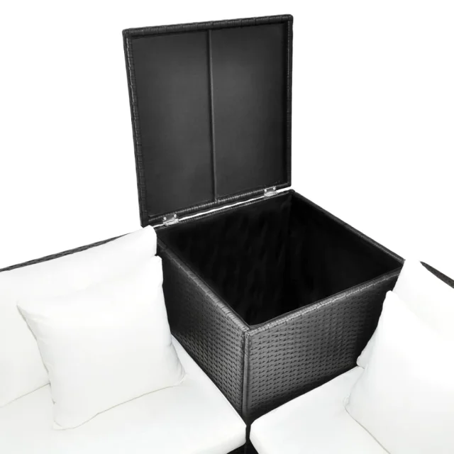 vidaXL Vrtna sedežna garnitura z blazinami 4-delna poli ratan črna