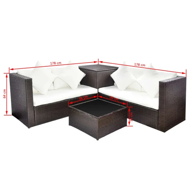 vidaXL Vrtna sedežna garnitura z blazinami 4-delna poli ratan rjava