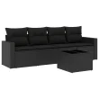 vidaXL Vrtna sedežna garnitura z blazinami 5-delna črna poli ratan