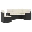 vidaXL Vrtna sedežna garnitura z blazinami 5-delna črna poli ratan