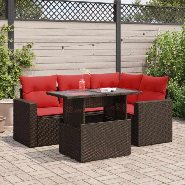 Ta vrtna sedežna garnitura je popoln dodatek za vaše dvorišče, teraso ali verando, saj zagotavlja udoben in vabljiv prostor za klepet z družino in prijatelji ali preprosto za sprostitev in uživanje na prostem.