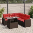 vidaXL Vrtna sedežna garnitura z blazinami 6-delna rjav ratan/akacija