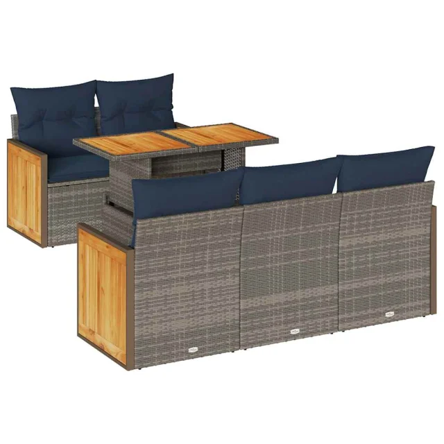 vidaXL Vrtna sedežna garnitura z blazinami 6-delna siv ratan/akacija