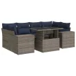 vidaXL Vrtna sedežna garnitura z blazinami 7-delna siv ratan/akacija