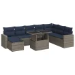vidaXL Vrtna sedežna garnitura z blazinami 9-delna siv ratan/akacija