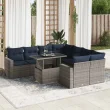 vidaXL Vrtna sedežna garnitura z blazinami 9-delna siv ratan/akacija