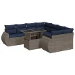 vidaXL Vrtna sedežna garnitura z blazinami 9-delna siv ratan/akacija