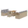vidaXL Vrtna sedežna garnitura z blazino 10 pcs Bež poli ratan