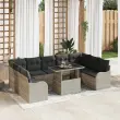 vidaXL Vrtna sedežna garnitura z blazino 10 pcs Svetlo siva Poly ratan