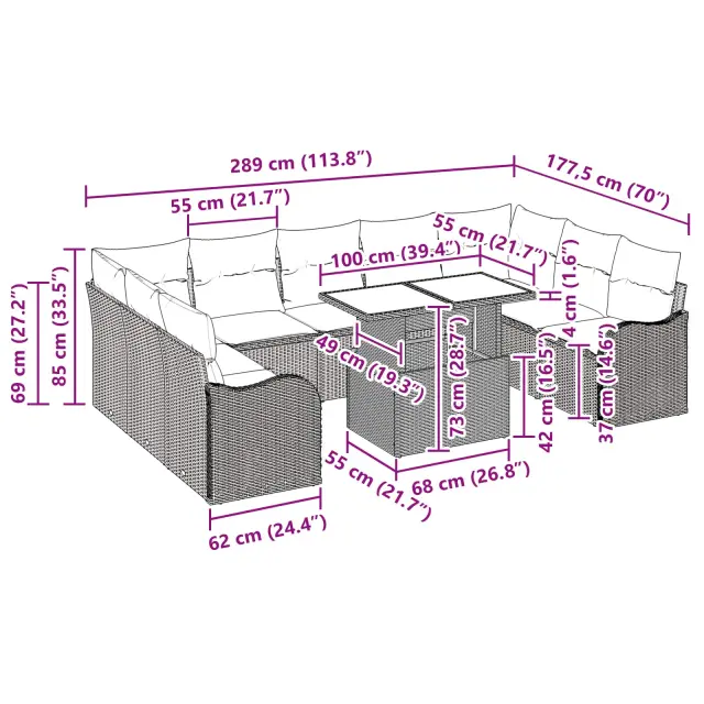 Ta modularna vrtna sedežna garnitura združuje sodobne linije z udobjem, zasnovana je za tiste, ki cenijo stil in praktičnost v svojem zunanjem prostoru. Eleganten dizajn se poda vsakemu sodobnemu zunanjemu prostoru, nudi veliko prostora za sedenje in malce razkošja. Njena prilagodljivost omogoča, da ustreza različnim postavitvam, kar jo dela idealno za velike in majhne zbirke na terasah, v vrtovih ali na balkonih.