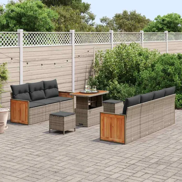 vidaXL Vrtna sedežna garnitura z blazino 10 pcs Siva