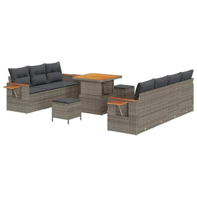Ta vrtnarski kavč z blazinami združuje stil in funkcionalnost, kar ga naredi idealnega za vašo teraso. Z značilnimi čistimi linijami in preprostim dizajnom izžareva eleganco ter ponuja udobno sedenje za sprostitev in družabna srečanja. Izdelan je iz vzdržljivih materialov, z woveno teksturo, ki dopolnjuje njegov prefinjen izgled in ustvarja prijetno vzdušje za sončne dni ali zvezdne noči.
