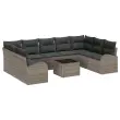 vidaXL Vrtna sedežna garnitura z blazino 10 pcs Siva poli ratan