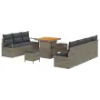 vidaXL Vrtna sedežna garnitura z blazino 10 pcs Siva poli ratan
