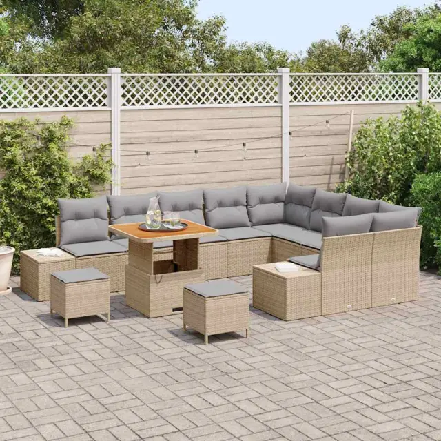 vidaXL Vrtna sedežna garnitura z blazino 12 pcs Bež Poly ratan