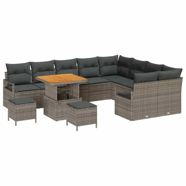 vidaXL Vrtna sedežna garnitura z blazino 12 pcs Siva poli ratan