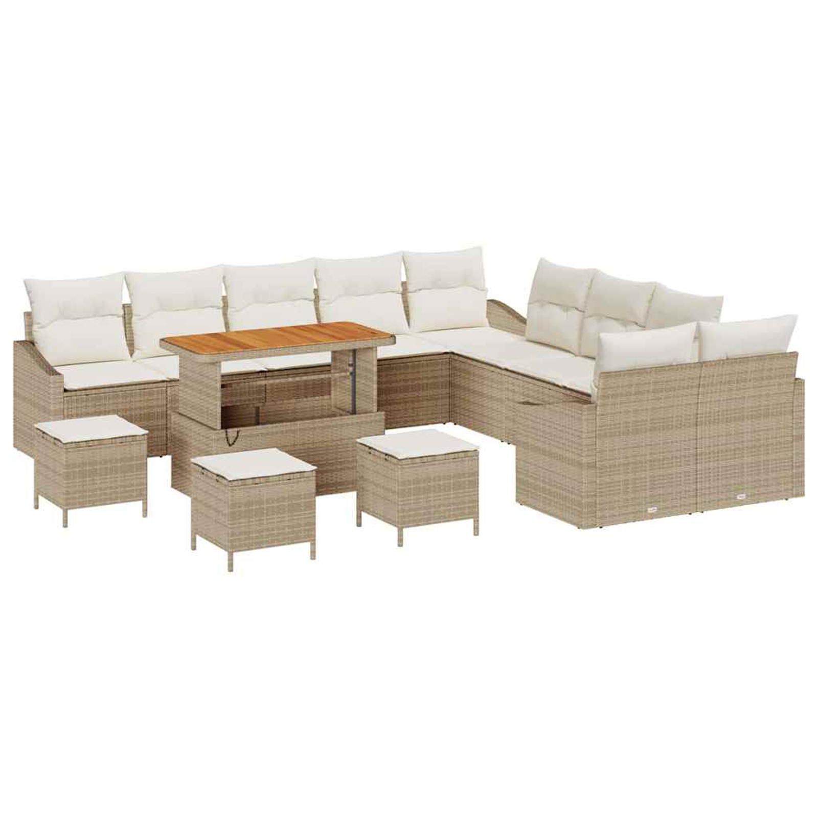 vidaXL Vrtna sedežna garnitura z blazino 13 pcs Bež Poly ratan