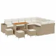 vidaXL Vrtna sedežna garnitura z blazino 13 pcs Bež poli ratan