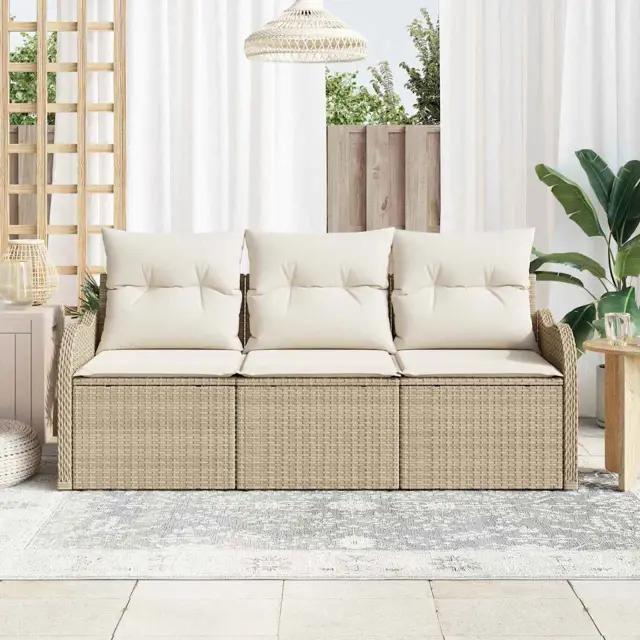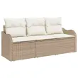 vidaXL Vrtna sedežna garnitura z blazino 3 pcs Bež Poly ratan
