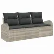 vidaXL Vrtna sedežna garnitura z blazino 3 pcs Svetlo siva Poly ratan