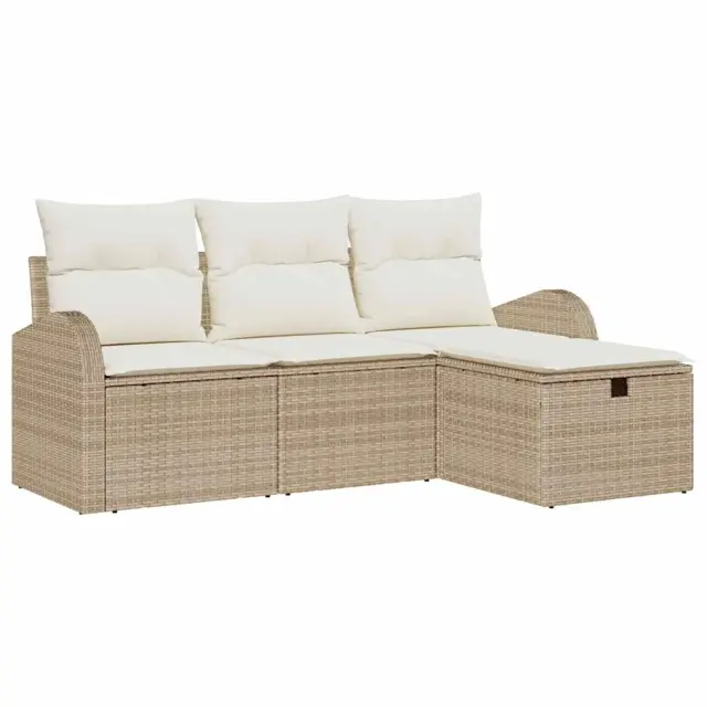 vidaXL Vrtna sedežna garnitura z blazino 4 pcs Bež Poly ratan