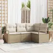 vidaXL Vrtna sedežna garnitura z blazino 4 pcs Bež in smetanova