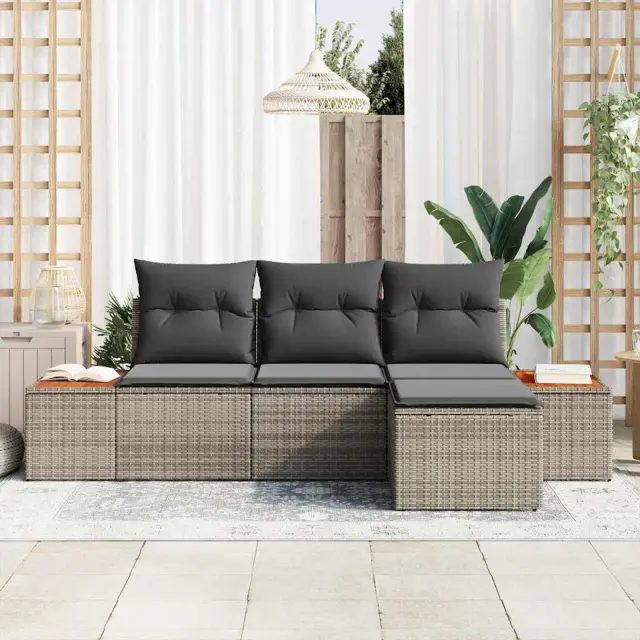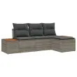 vidaXL Vrtna sedežna garnitura z blazino 4 pcs Siva Poliratan