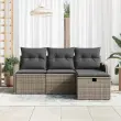 vidaXL Vrtna sedežna garnitura z blazino 4 pcs Siva Poly ratan