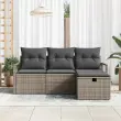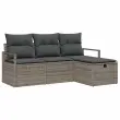 vidaXL Vrtna sedežna garnitura z blazino 4 pcs Siva Poly ratan