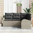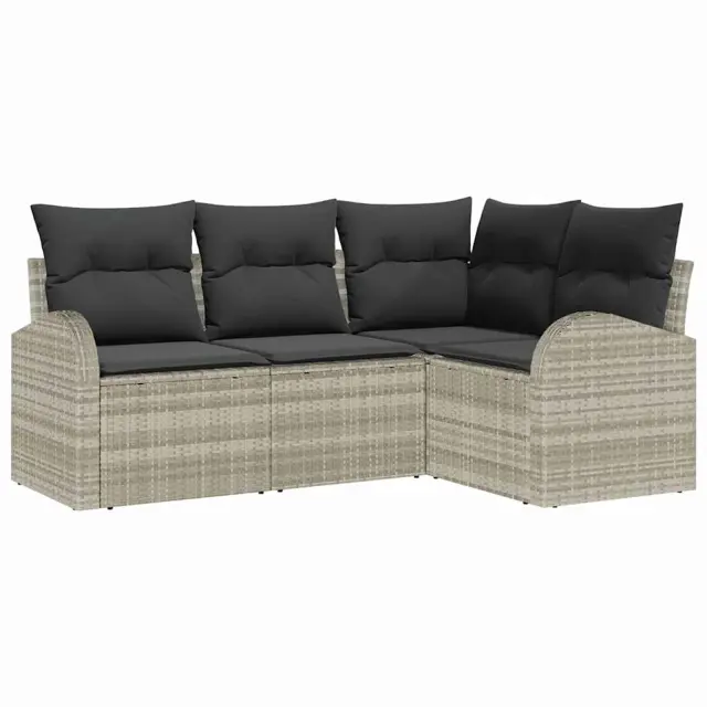 vidaXL Vrtna sedežna garnitura z blazino 4 pcs Svetlo siva poli ratan
