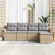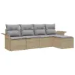 vidaXL Vrtna sedežna garnitura z blazino 5 pcs Bež poli ratan