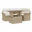 vidaXL Vrtna sedežna garnitura z blazino 5 pcs Bež Poliratan