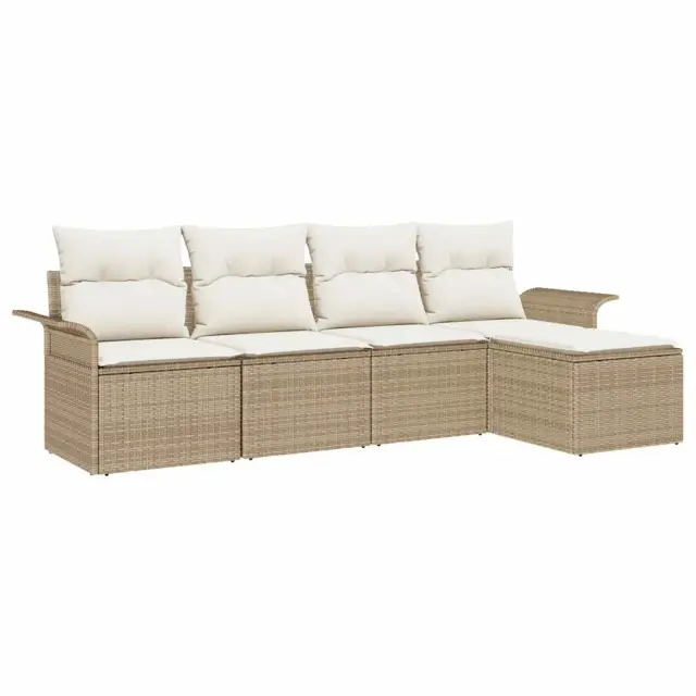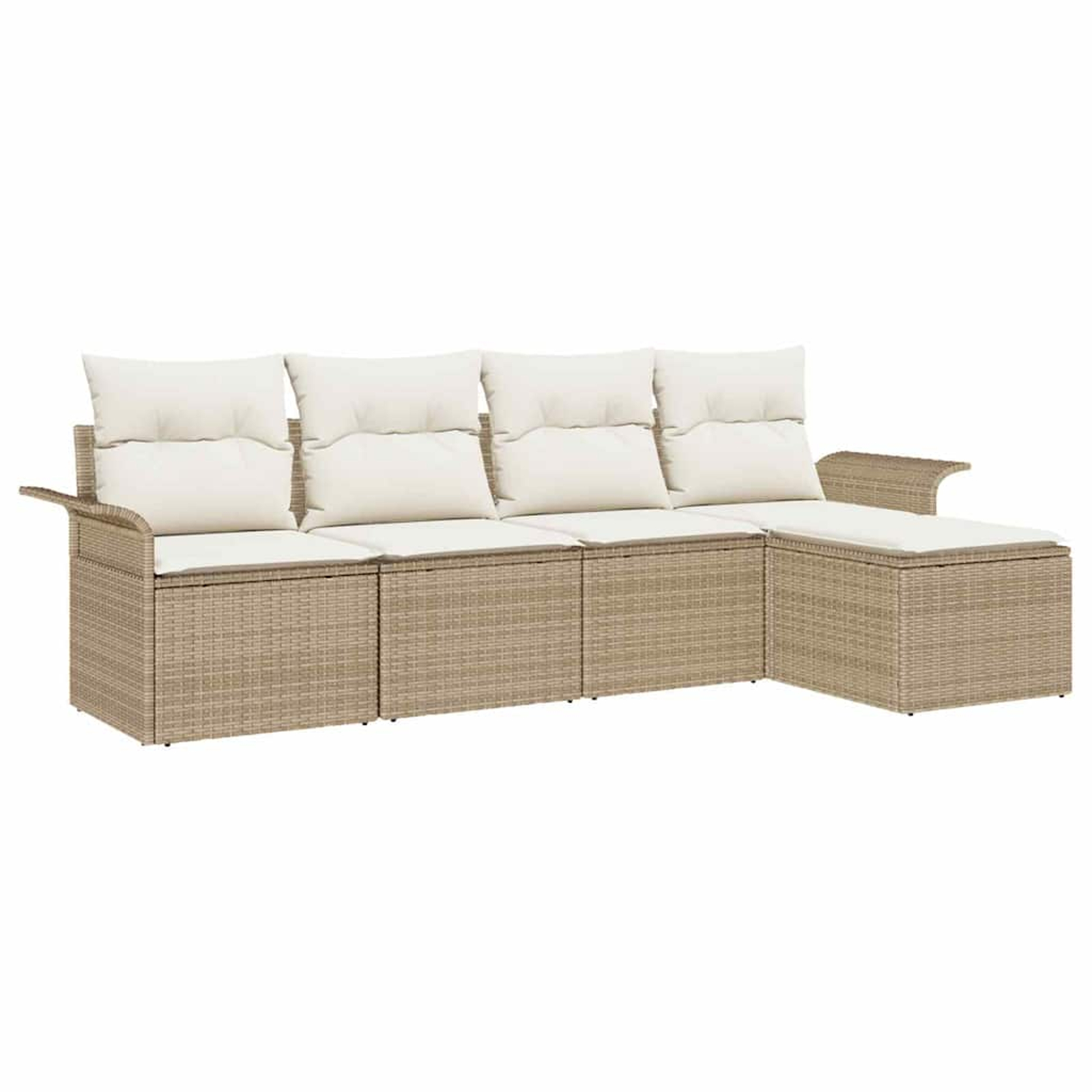 vidaXL Vrtna sedežna garnitura z blazino 5 pcs Bež poli ratan