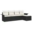vidaXL Vrtna sedežna garnitura z blazino 5 pcs Črna poli ratan
