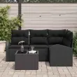 vidaXL Vrtna sedežna garnitura z blazino 5 pcs Črna poli ratan