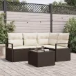 vidaXL Vrtna sedežna garnitura z blazino 5 pcs Rjava in krem