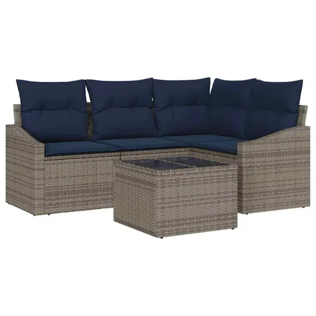 vidaXL Vrtna sedežna garnitura z blazino 5 pcs Siva in mornarsko modra