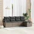 vidaXL Vrtna sedežna garnitura z blazino 5 pcs Siva Poly ratan