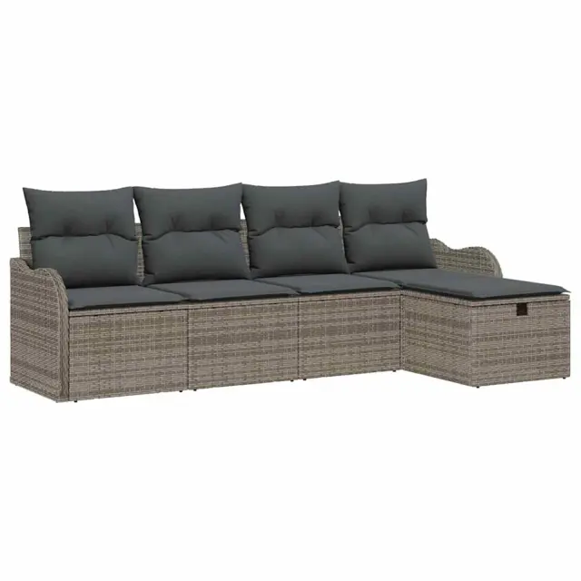 vidaXL Vrtna sedežna garnitura z blazino 5 pcs Siva poli ratan