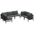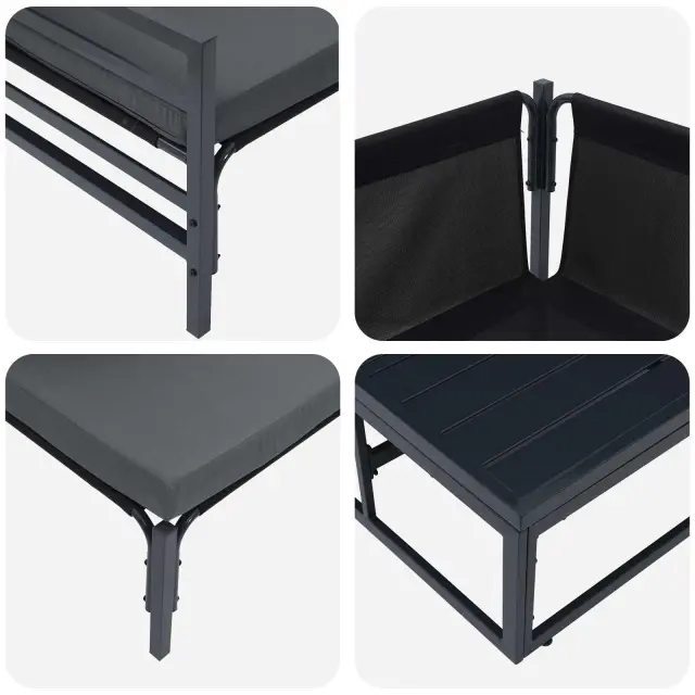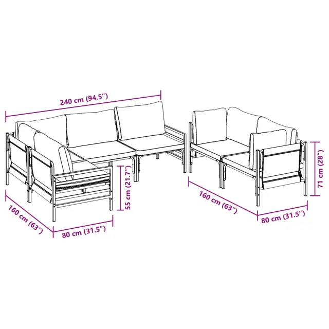 Ta komplet zunanjega pohištva z blazinami ponuja prijetno sedenje za različne zunanje prostore, kot so vrtovi, terase ali balkoni. Z elegantnim dizajnom in udobnimi blazinami nudi tako stil kot udobje, kar ga spremeni v središče uživanja ob naravni lepoti s prijatelji ali družino. Ne glede na to, ali gre za mirne trenutke ali družabna srečanja, ta komplet izboljša vzdušje s svojo kombinacijo oblike in funkcionalnosti, zaradi česar je nepremagljiva izbira za ljubitelje zunanjih aktivnosti.