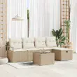 vidaXL Vrtna sedežna garnitura z blazino 6 pcs Bež Poly ratan