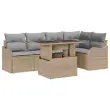 vidaXL Vrtna sedežna garnitura z blazino 6 pcs Bež Poly ratan