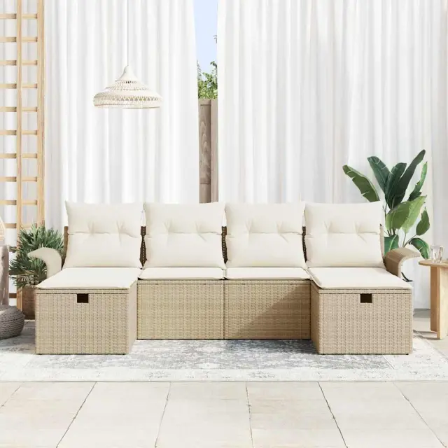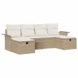 vidaXL Vrtna sedežna garnitura z blazino 6 pcs Bež Poly ratan